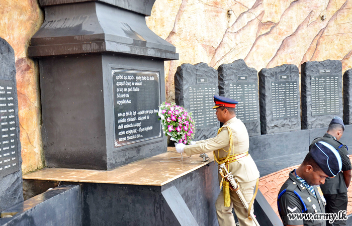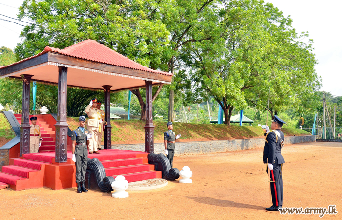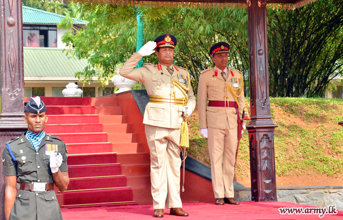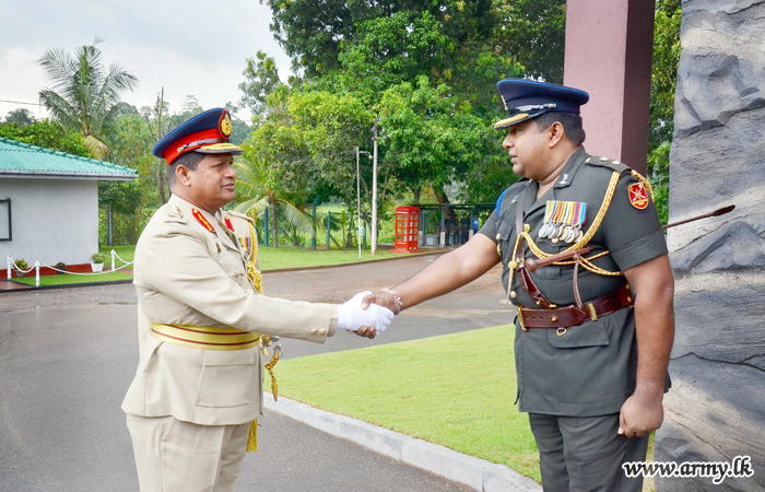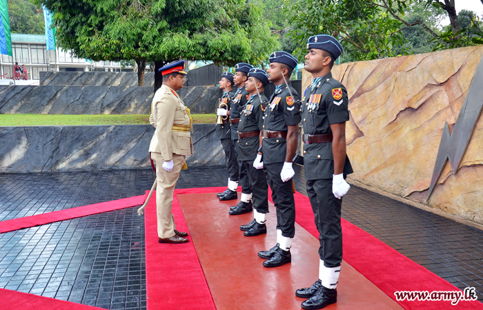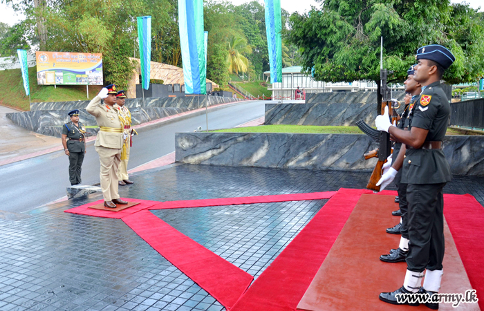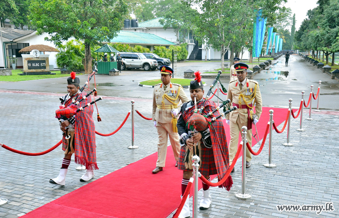 As the initial military formality, the new Colonel Commandant was warmly welcomed by the SLSC Regimental Centre Commandant at the entrance to the Regimental Headquarters complex and invited him to receive the Guard Turnout salute before he was conducted to pay tribute to the memory of fallen SLSC War Heroes at the Regimental monument.