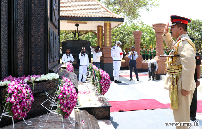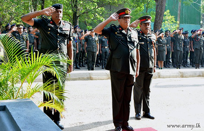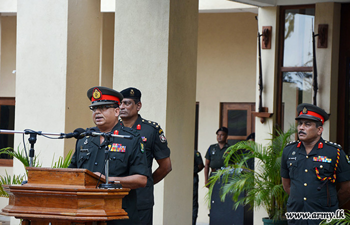 He hoisted the flag of the Security Forces - Wanni and observed a two minute-silence in remembrance of fallen Heroes in front of the main office complex. Subsequently, the message of the Commander of the Army was read out to all.
