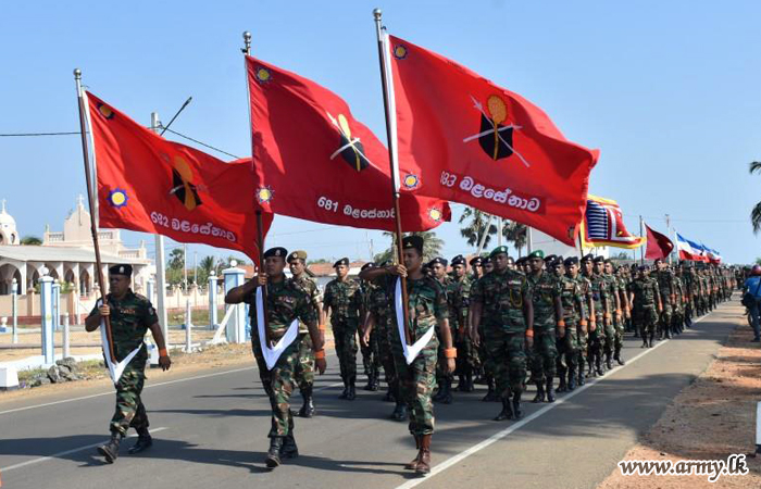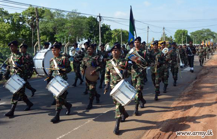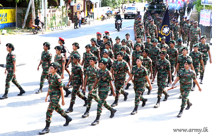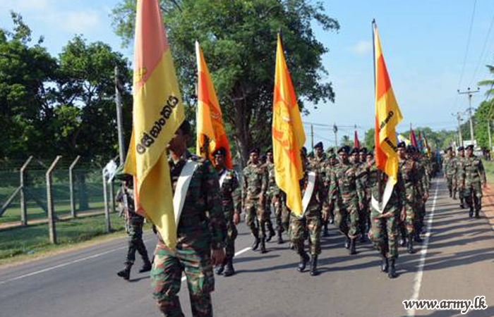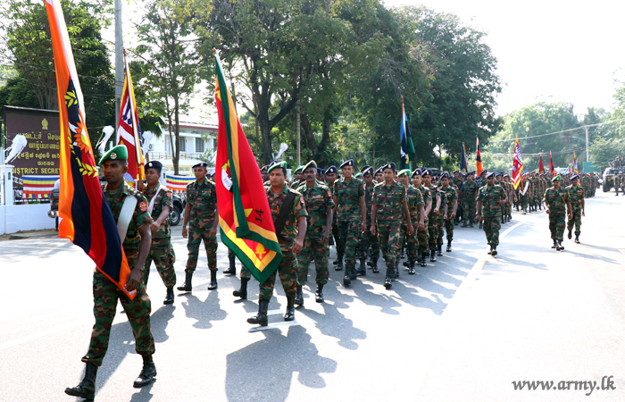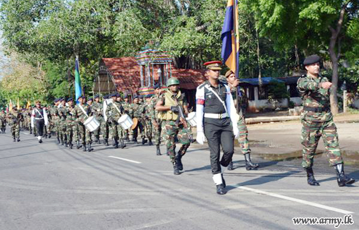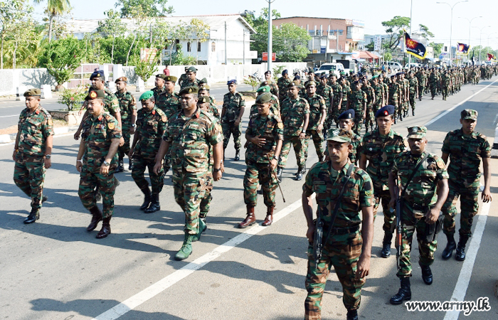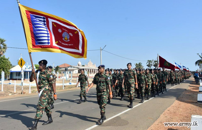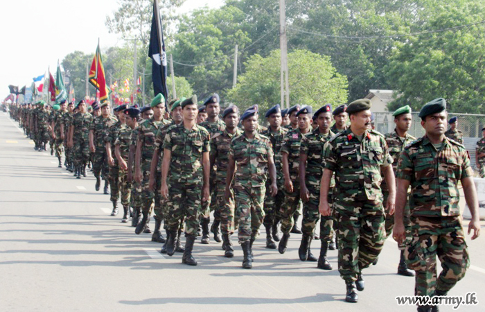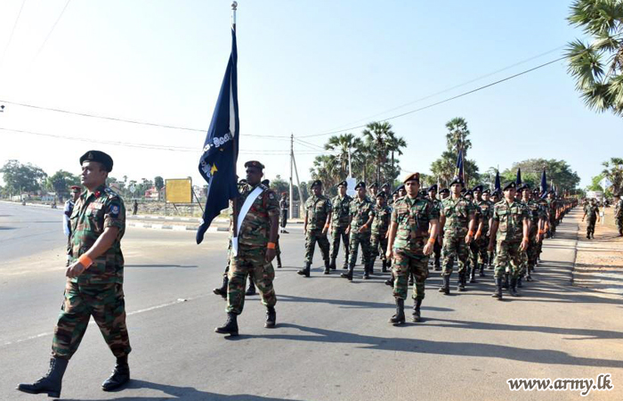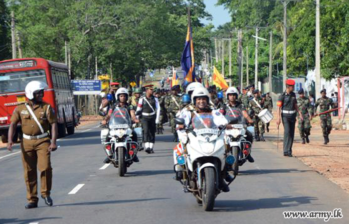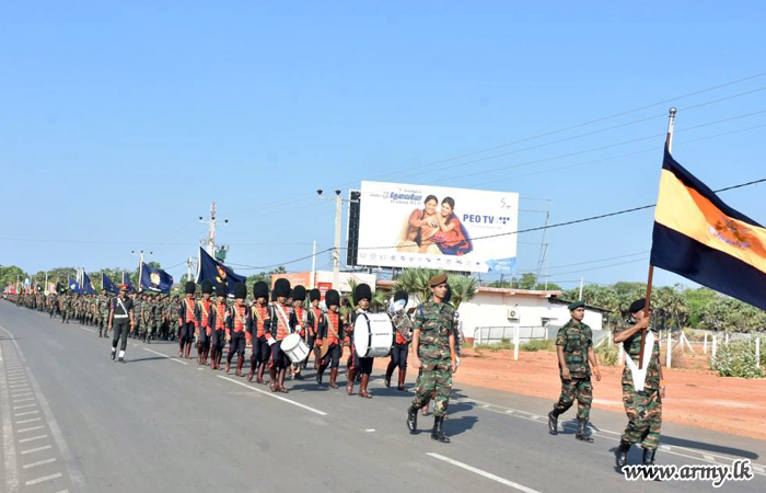 This event was organized under the guidance of the Commander, Security Forces - Kilinochchi, Major General G.V Ravipriya and All Divisional Commanders, Brigade Commanders, Commanding Officers, Senior Officers and Officers attended the march along with the troops. Further, huge crowd rushed and took positions along the road to witness the march.