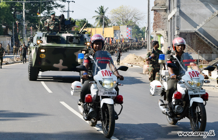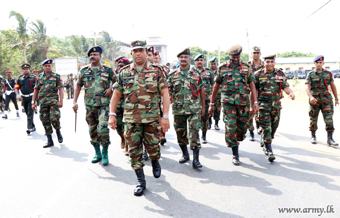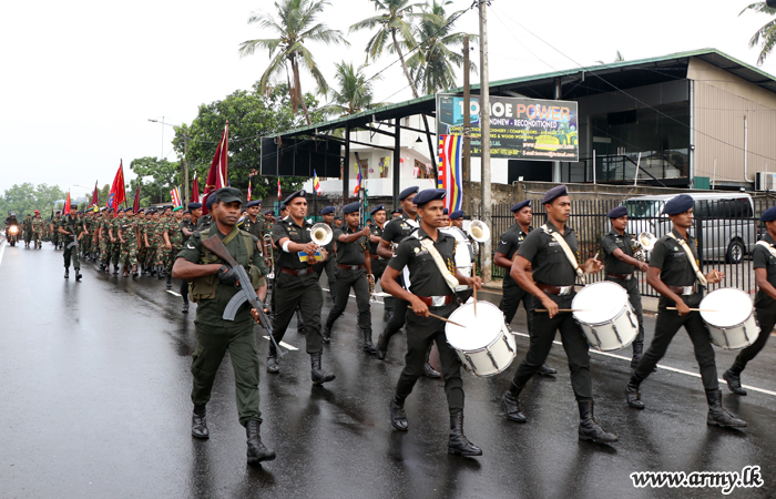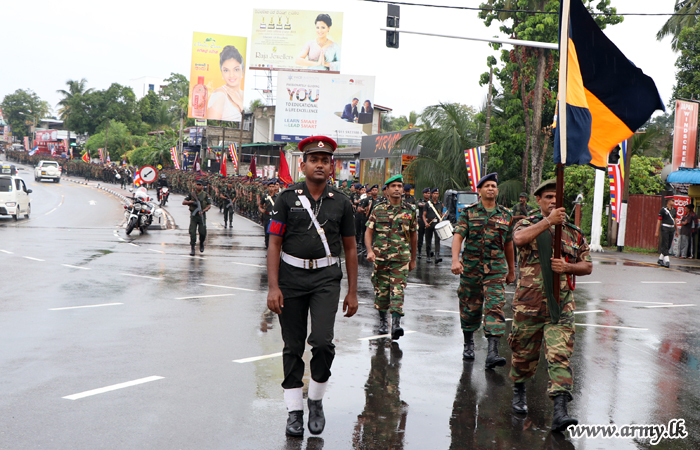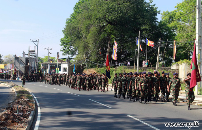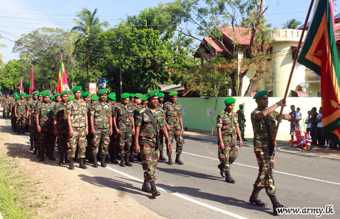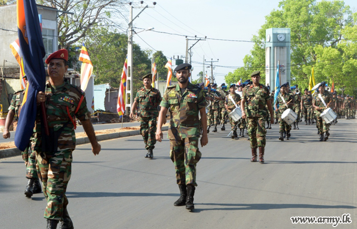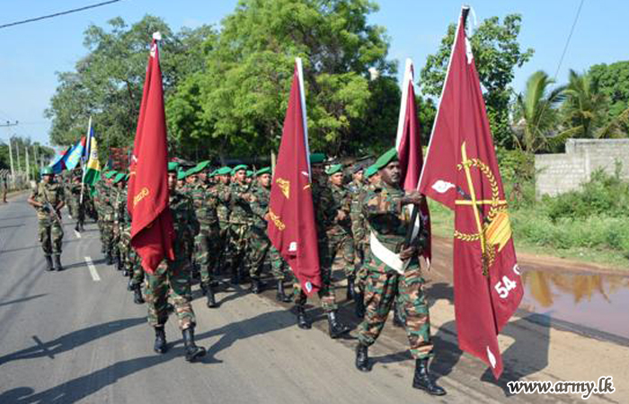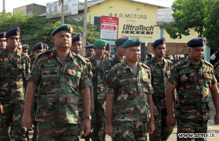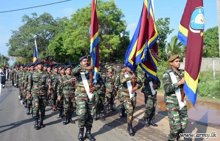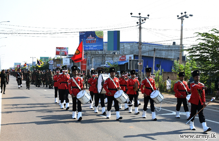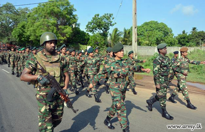 This event was organized under the guidance of the Commander, Security Forces - Kilinochchi, Major General G.V Ravipriya and All Divisional Commanders, Brigade Commanders, Commanding Officers, Senior Officers and Officers attended the march along with the troops. Further, huge crowd rushed and took positions along the road to witness the march.