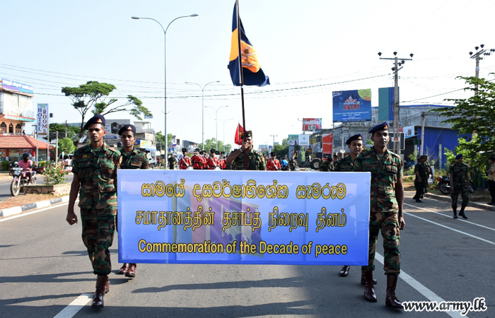 Meanwhile, troops of Kilinochchi also conducted the commemorative Peace Walk on Wednesday (22) beginning from Karadippokku junction to Killinochchi Monument.