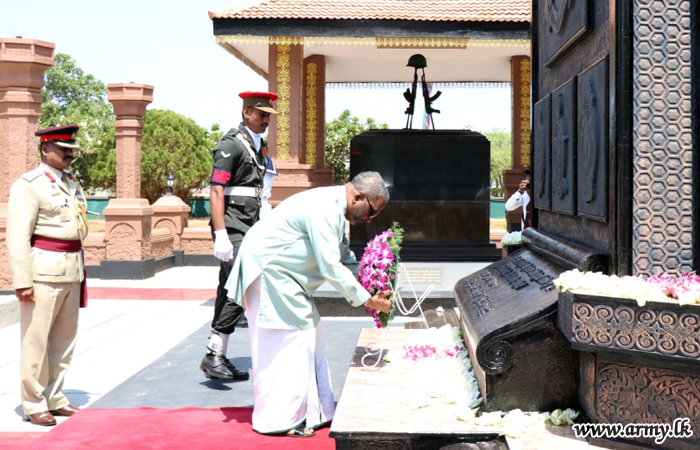 Governor of Northern Province, Hon. Dr Suren Raghavan as the Chief Guest of the event addressed the gathering in the commemoration ceremony. The Consul General of India in Jaffna, Mr S Balachandran, Chief Secretary - Northern Province, Mr A Pathinathan, District Secretary - Jaffna, Mr N Vethanayahan, District Secretary - Kilinochchi, Mr Sudharam Arumanayagam, District Secretary - Mullaittivu, Mrs Rupawathi Ketheeswaran, District Secretary - Mannar, Mr S Mohanrasa, Additional District Secretary - Vavuniya, Mr Thiresh Kumar, Commander, Security Forces - Killinochchi, Major General G.V Ravipriya, Representative of Security Forces - Mullaittivu, Brigadier W.D.C.K Costa, Deputy Commander of Northern Naval Area, Commodore S.D Senarathne, Commanding Officer, Sri Lanka Air Force Station - Palaly, Group Captain S.D Jayaweera and Deputy Inspector General of Police - Jaffna, Mr M.B Rajitha Sri Daminda laid floral tributes to the monument of fallen War Heroes.