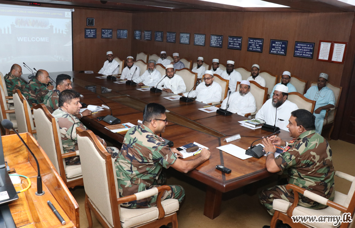 A group of All Ceylon Jamiyathul Ulama Association of Jaffna and Kilinochchi District Chairman Mr S. Sufyan, together with several Moulavis met Major General Dharshana Hettiarrachchi, Commander, Security Forces - Jaffna on Sunday (19) in order to receive an update on the security concerns in the Jaffna peninsula.