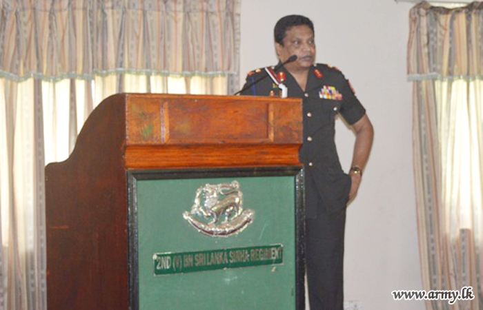 General Officer Commanding (GOC), 11 Division, Major General Tissa Nanayakkara with the objective of appreciating the formidable roles and tasks 111 Brigade and 112 Brigade troops performed during the most recent disturbances met them at the 2 (Volunteer) Sri Lanka Sinha Regiment Headquarters on Saturday (25).