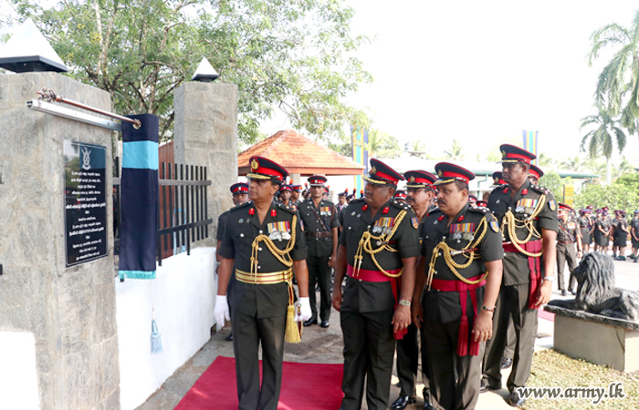 The newly-built entrance gate, name board, sentry point, guard turnout platform and the renovated Sri Lanka Army General Service Corps (SLAGSC) War Heroes’ monument were unveiled recently by Major General Wajira Palihakkara, Colonel Commandant of the SLAGSC and acting Deputy Chief of Staff.