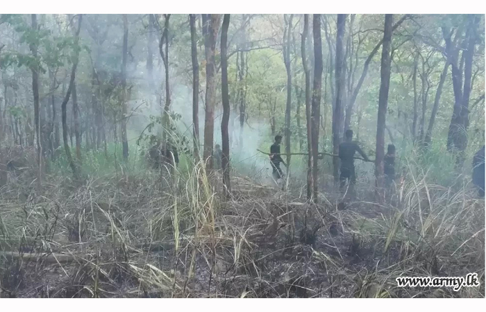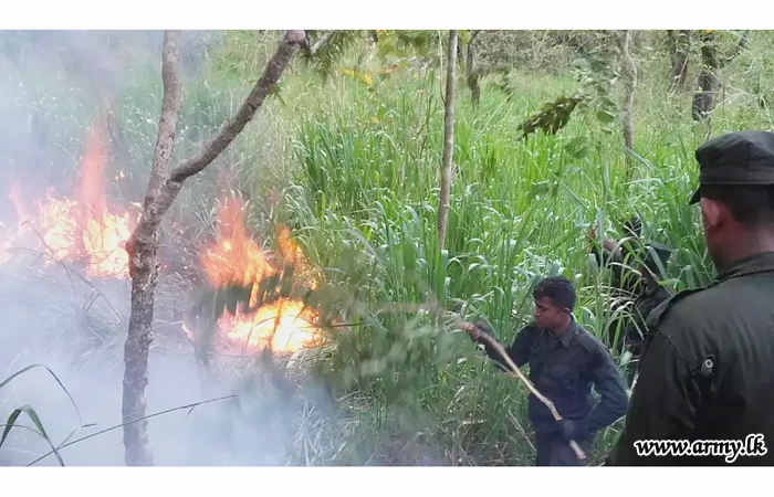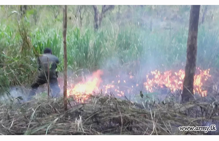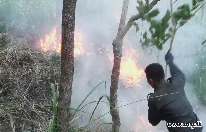 One Officer and 25 Other Rankers of the Gemunu Watch serving the 121 Brigade Headquarters at Kumbukkana, Moneragala rushed to Medagama, Kahatiyanwala area and extinguished a fast spreading bushfire in the mountainous range, close to a line of civilian houses on Monday (27) evening.