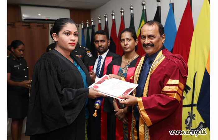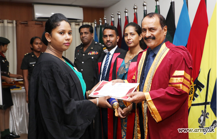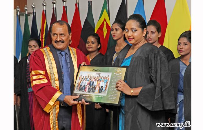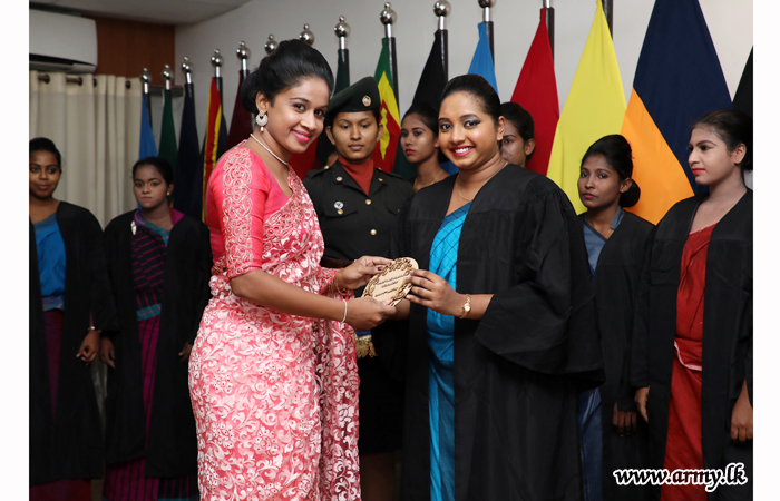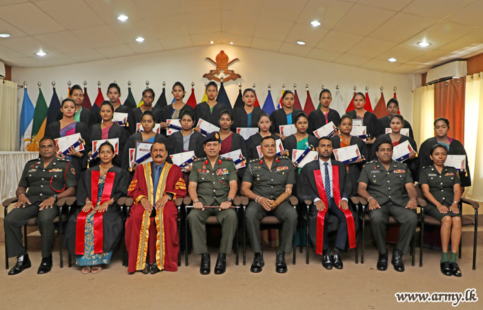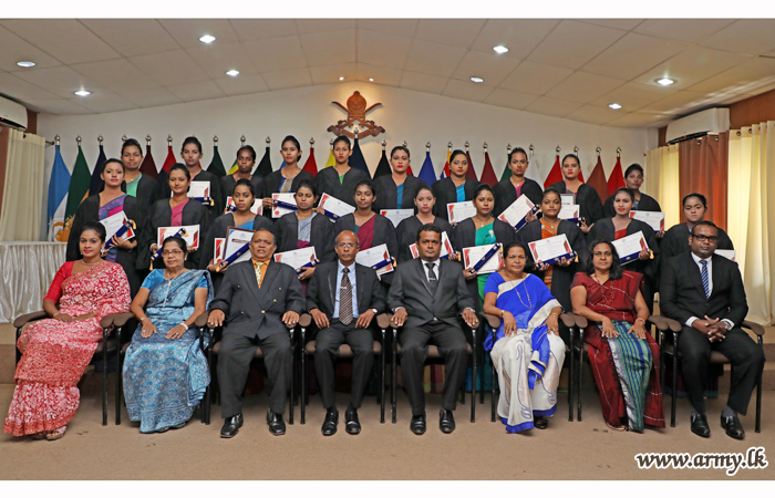 On the guidelines given by the Commander of the Army, 20 Sri Lanka Army Women’s Corps (SLAWC) ladies who followed a 6 month-long course on ‘pre-childhood development and pre-school teaching’, received their diploma certificates during a graduation ceremony, held recently at the Army Headquarters.
