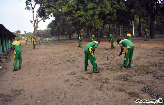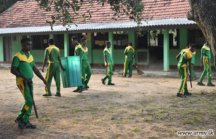 11 (V) Gajaba Regiment (GR) troops of the 651 Brigade under the 65 Division of the Security Force Headquarters - Kilinochchi (SFHQ-KLN) at the request of Kariyalanagapdduwan Primary School authorities conducted a cleaning programme inside the school premises on Thursday (30).