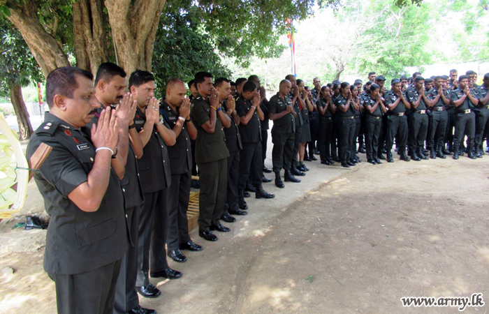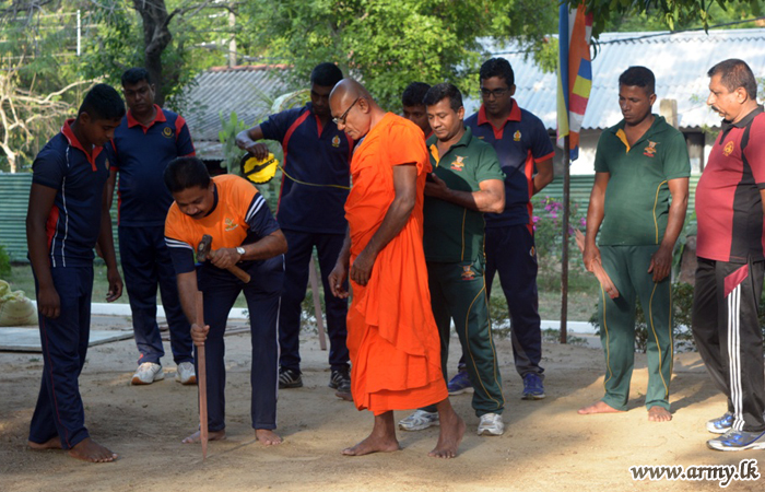 Amid ‘Seth Pirith’ chanting of the Maha Sangha, headed by Ven Delwita Mettalankara Thero, Chief Incumbent, Welikanda Buddhist Centre, the ceremony for foundation-laying got underway in the presence of a large gathering, including Brigadier Michael Wanniarachchi, Brigadier Admin & Quartering, SFHQ-E and Officers and Other Ranks. |