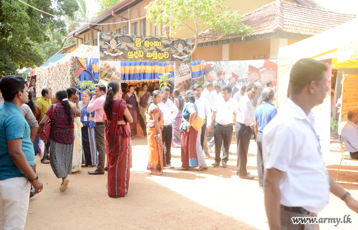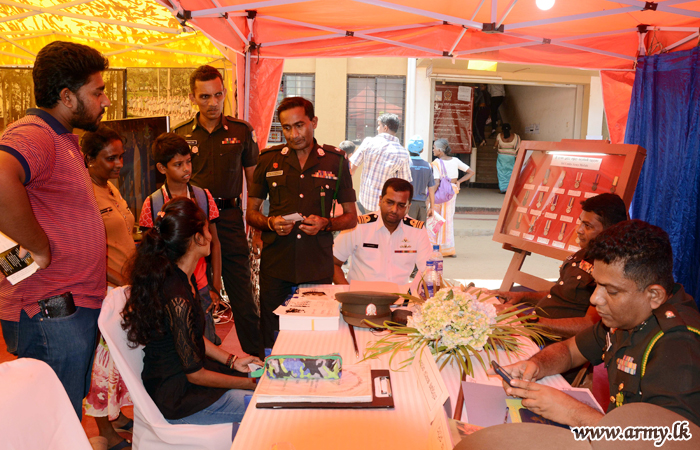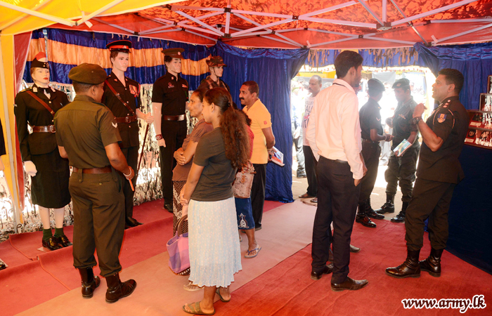 The stall at Sangamitta College premises, erected by troops of the 11 Division Headquarters under command to the Security Force Headquarters - Central (SFHQ-Cen) was supported by the Mechanized Infantry Regiment, Directorate of Personnel Administration, Directorate of Pay & Records and Directorate of Recruitment. Several Senior Officers, Officers and Other Ranks attended the occasion. |