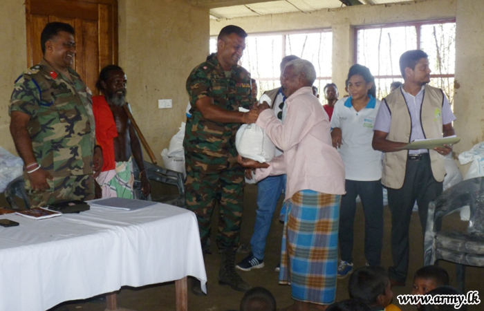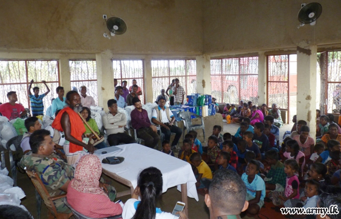 Meanwhile, the same 233 Brigade took steps to give away dry ration packs to 172 families and school accessories to 34 students who belong to low-income group families in Kungalkalkulam areas on Saturday (25) at the Kungalkalkulam cultural hall, thanks to the sponsorship, provided by the ‘Gandhi Foundation’ at Kottawa.