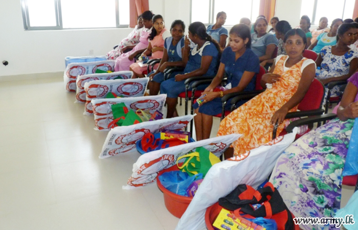 233 Brigade Headquarters under the Security Force Headquarters - East (SFHQ-E), considering the poverty factor in Welikanda area with sponsorship, provided by the ‘Gauthama Daruwo Aryan Foundation’ gave away packs of nutrients and baby requirements, each worth Rs 2500/= to 115 pregnant women of low-income families.