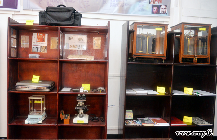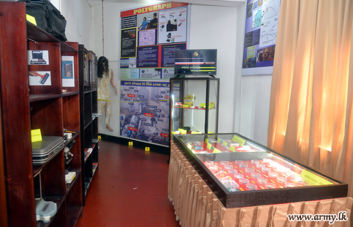 The new Display Room also includes use of evidence by ultra violet radiation methods, details about polygraph tests, drugs and narcotics, evidence collecting methods in crime scenes, documentation of crime scene investigations, foot print and finger print lifting equipment, samples of firearms and explosives, protection of crime scene witnesses and dummies for investigations, etc.