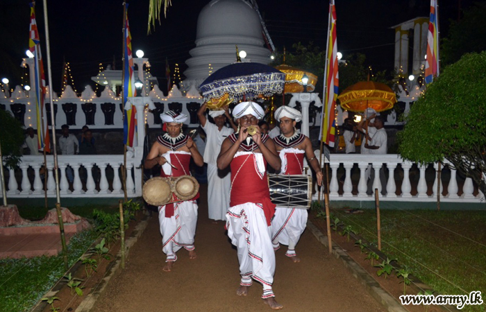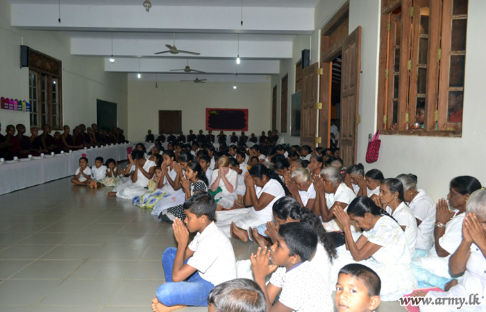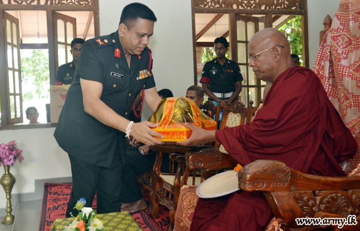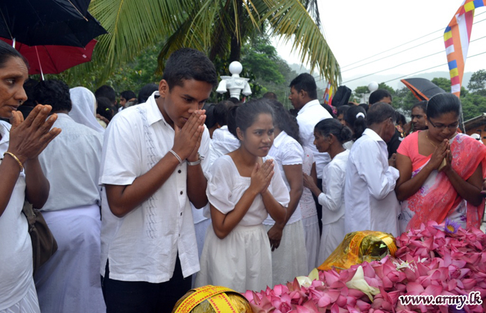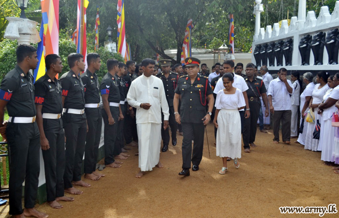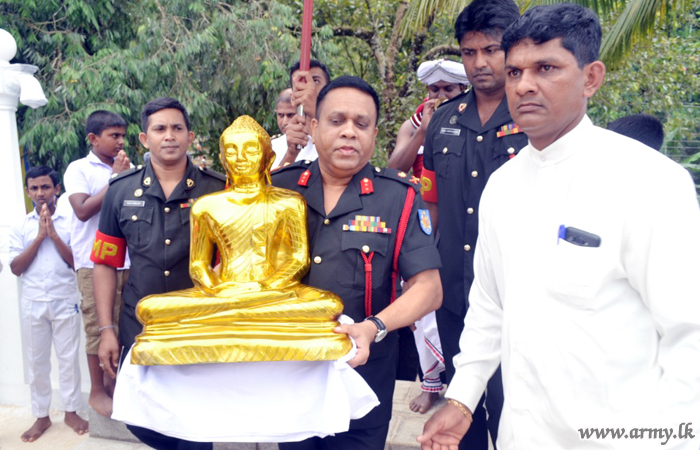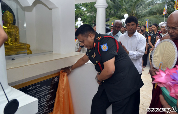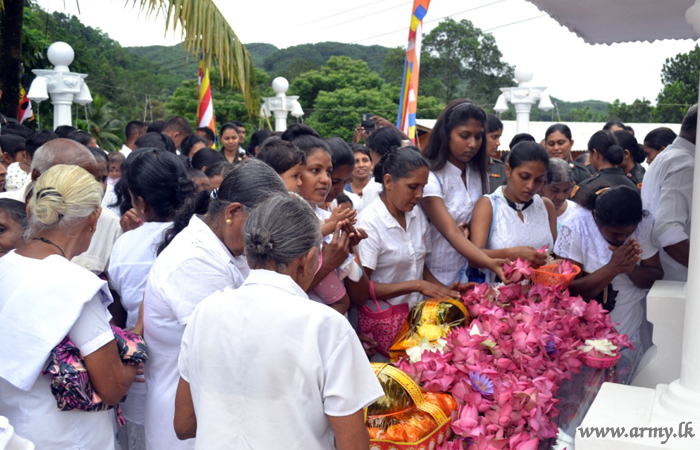 Major General Gamini Sirisena amid ‘Seth Pirith’ chanted by members of the Maha Sangha and reverberation of ‘Sadhu Sadhu’ blessings of the devotees unveiled the pinnacle at the request of the Maha Sangha.