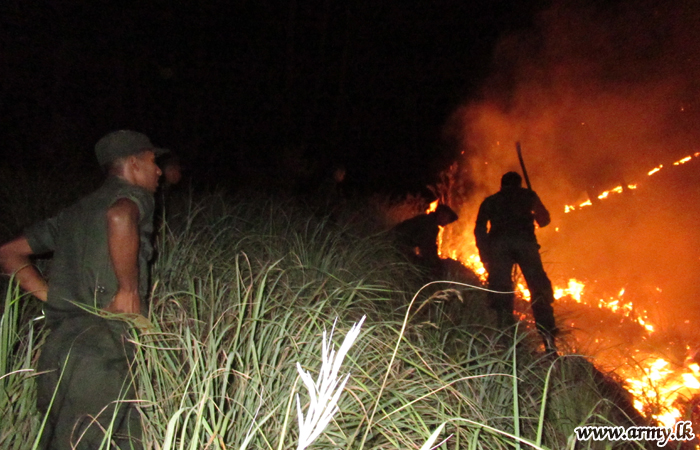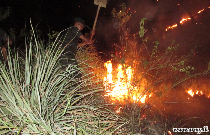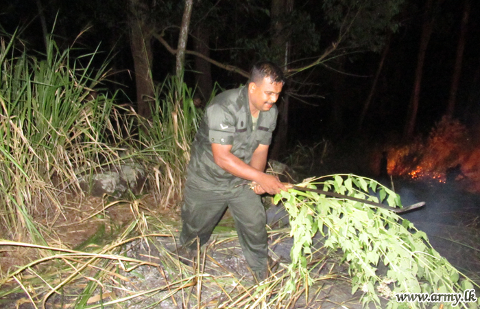 Troops of the Security Force Headquarters - Central (SFHQ-C) a few days ago (10) rose to the occasion and doused a bush fire that erupted in the general area of Kaluambathenna, Diyathalawa in the Bandarawela District around 5.30 pm on the instructions of Major General Laksiri Waduge, Commander, Security Forces - Central.