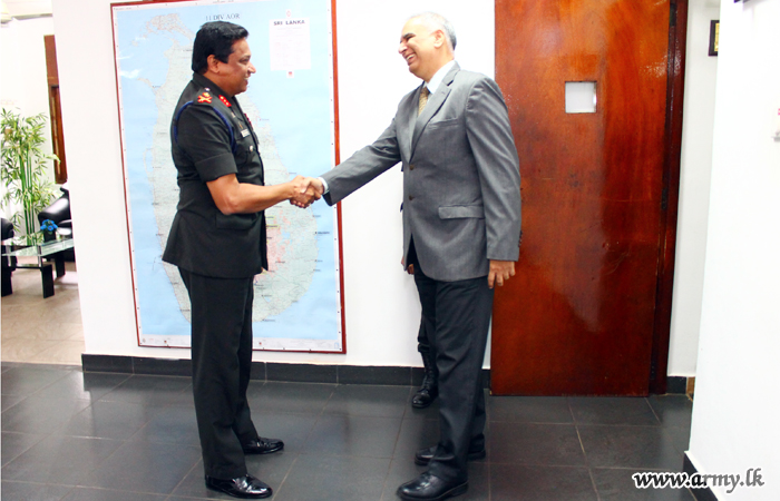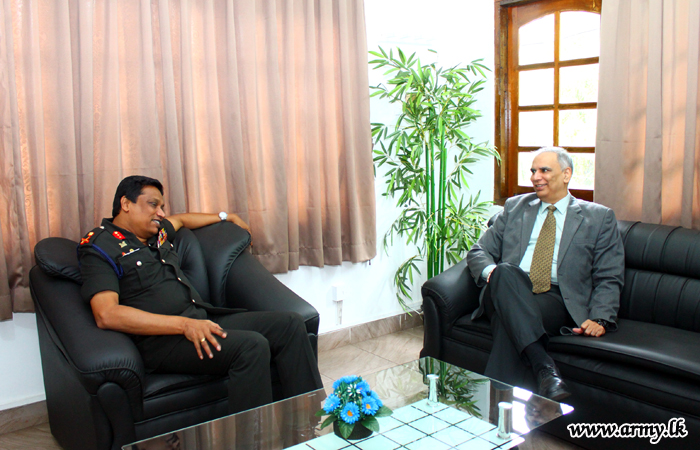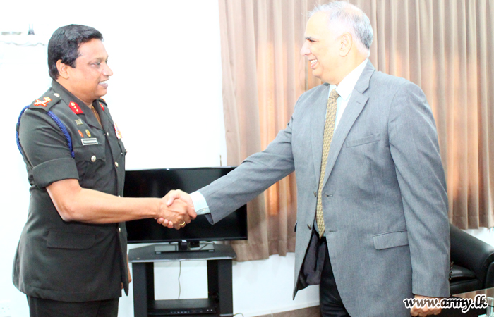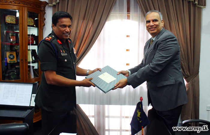 The Deputy High Commissioner of India in Sri Lanka HE Dhirendra Singh during a visit to Kandy called at the 11 Division Headquarters and shared a few thoughts with Major General Tissa Nanayakkara, General Officer Commanding, 11 Division on Thursday (13).