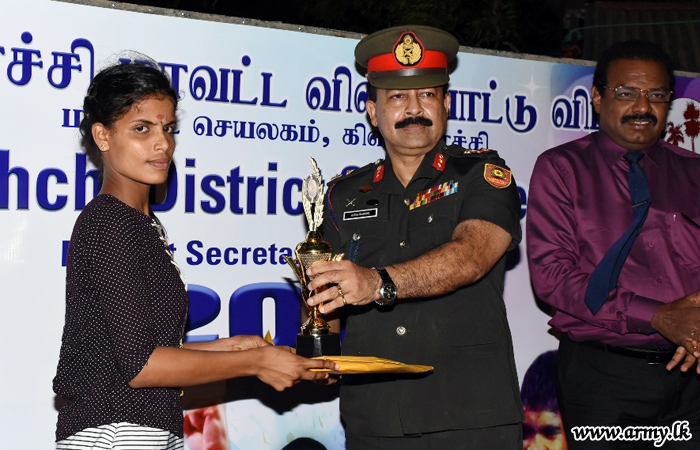 The closing ceremony of the annual District Sports Meet -2019 of Kilinochchi District that amply indicated the physical robustness, energetic power and the stability of minds of all athletes in the District took place on Tuesday (11) at the Vaddakachchi central college playground in Kilinochchi with security arrangements, provided under guidance of the Commander Security Forces - Kilinochchi, Major General G V Ravipriya.