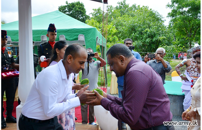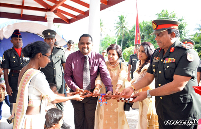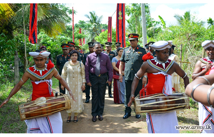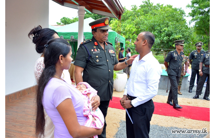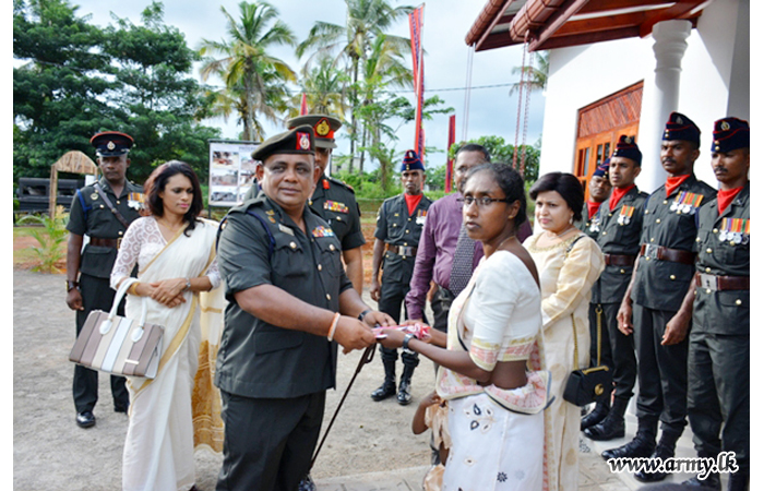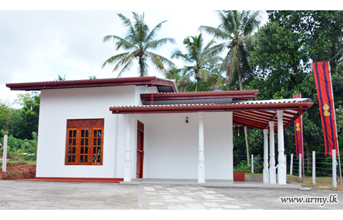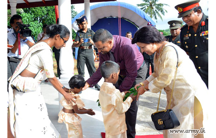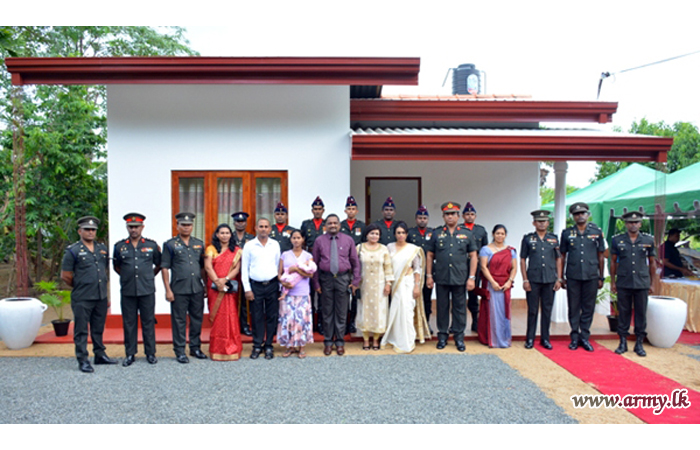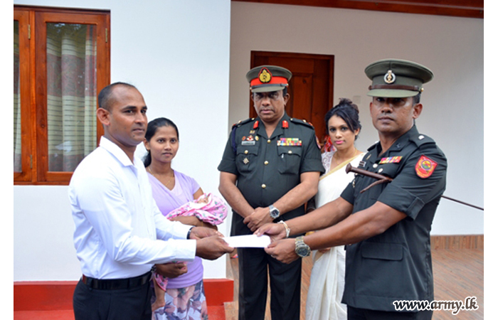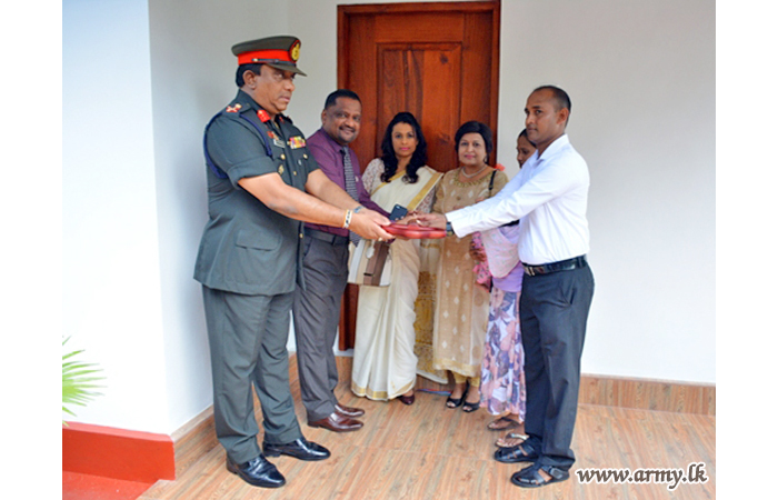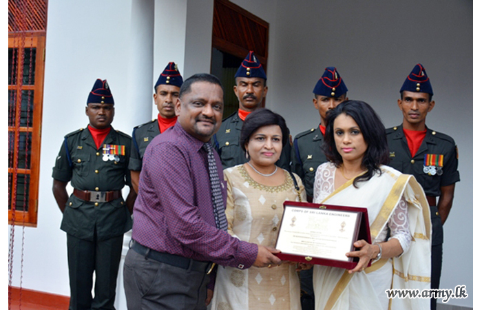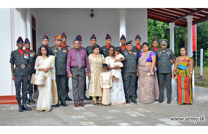 The new house, built by 15 (V) SLE troops at Thalagala was vested in the family members of late War Hero, Sapper P.D.R Priyadarshana of 8 Field Engineers Regiment who passed away on 9 December 2017. He was also a father of two kids and serving at the Regimental Headquarters at the time of his demise.