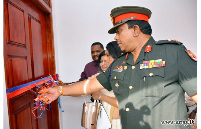 Mr and Mrs Mohanshankar, two-philanthropists, based in Dubai known to Major General Darshana Hettiarrachchi, Colonel Commandant, SLE and Commander, Security Forces - Jaffna came forward to sponsor the cost of those two constructions at the request of Major General Hettiarrachchi. Earlier too, both these expatriates sponsored the construction of two more houses for differently-able soldiers of SLE in Kalutara and Kurunegala areas. Similarly, the same couple continues to give scholarships to children of War Heroes and is engaged in distribution of sanitary equipment and fittings among needy families in the Corp of Sri Lanka Engineers.
