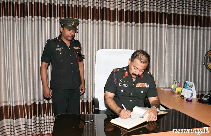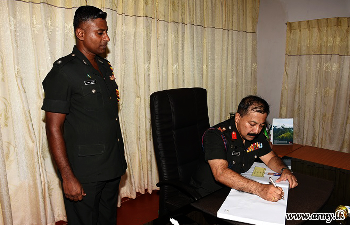 Major General Vijitha Ravipriya, Commander, Security Forces Kilinochchi (SF-KLN) made an official visit to the Forward Maintenance Area – Kilinochchi (FMA-KLN) and its under command log units on Friday (14).