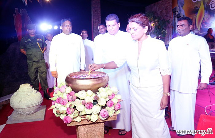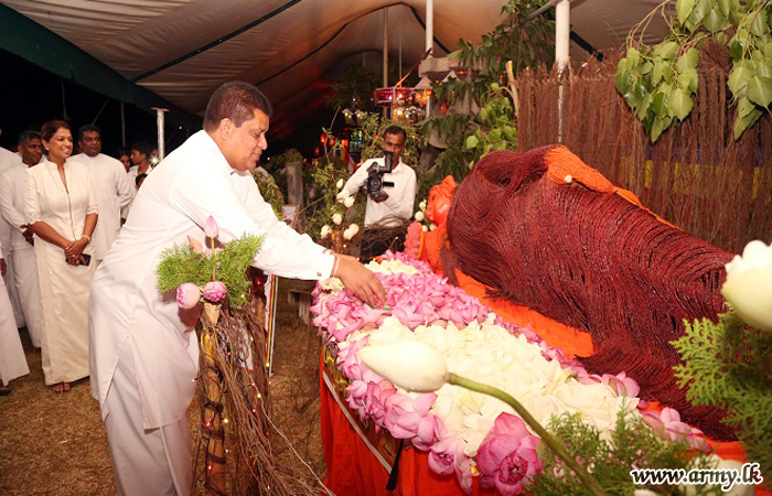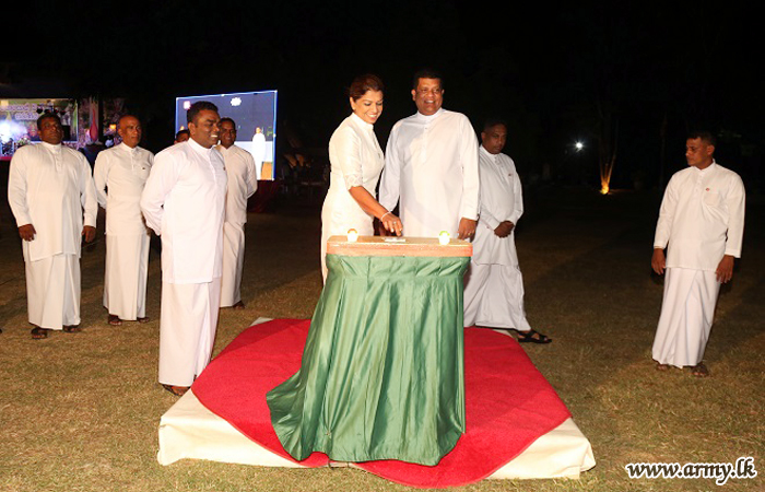Inauguration of the Poson Zone followed lighting of the traditional oil lamp. He also switched on illumination in the Poson Zone together with Mrs Sujeewa Nelson, Vice President, Army Seva Vanitha Unit and Chairperson of the Gajaba Regiment Seva Vanitha Unit and a few Senior Officers.