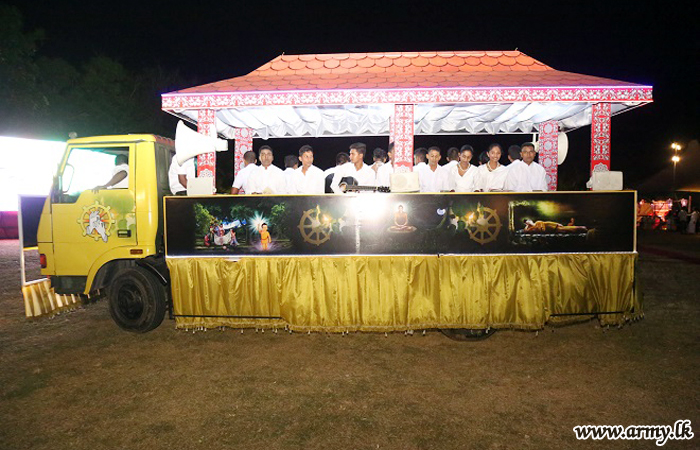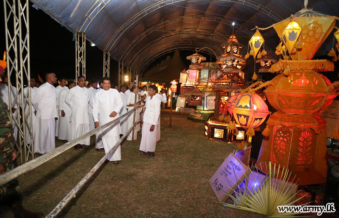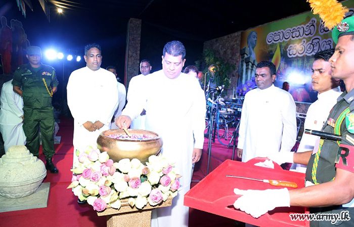 Major General Shavendra Silva, Colonel of the Regiment, Gajaba Regiment and Commando Regiment and Chief of Staff of the Army at the invitation of the Centre Commandant, GR, Brigadier W.H.K.S Peiris as the Chief Guest inaugurated the GR Poson Zone, comprised of a display of Poson lanterns and presentation of devotional songs (Bhakthi Gee).