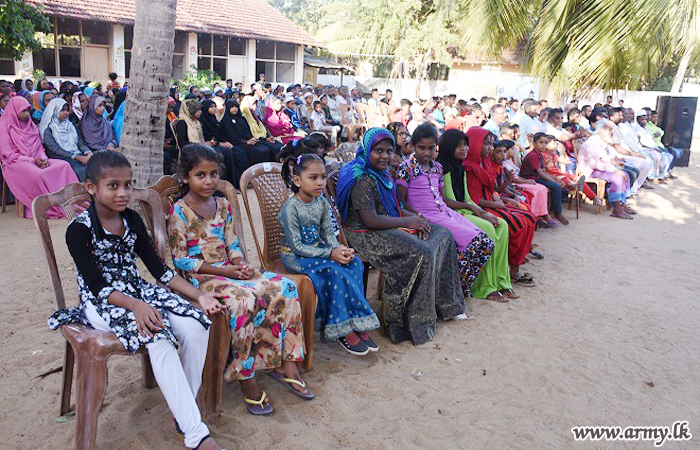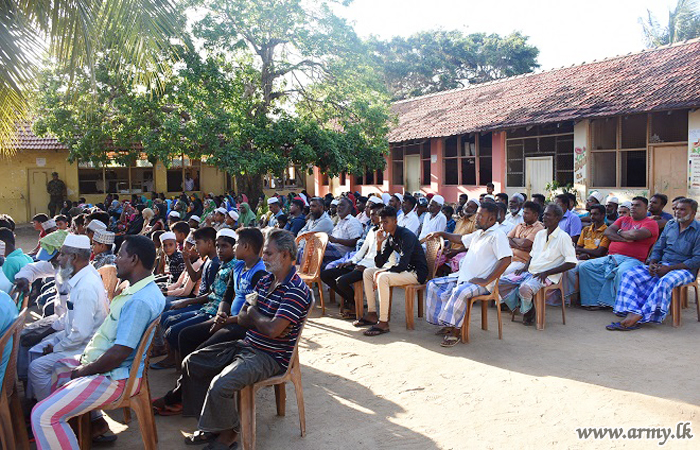 Major General Vijitha Ravipriya, Commander, Security Forces - Kilinochchi (SF-KLN), Major General Wasantha Kumarapperuma, General Officer Commanding (GOC), 65 Division with the Commander, 651 Brigade and 11 Gajaba Regiment troops organized a friendly interactive session with Muslim people in order to promote mutual understanding and co-existence. It took place in Nachchikuda area on Friday (14).