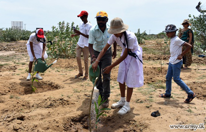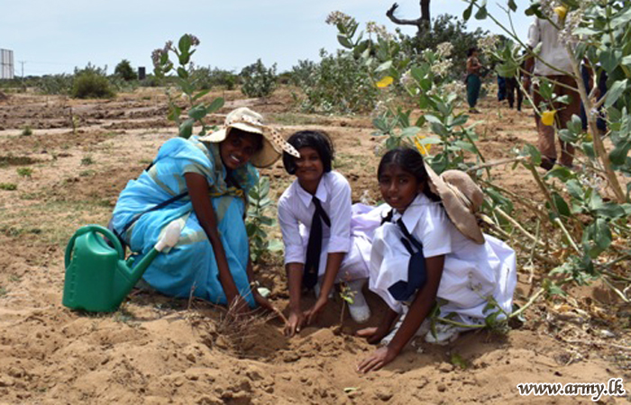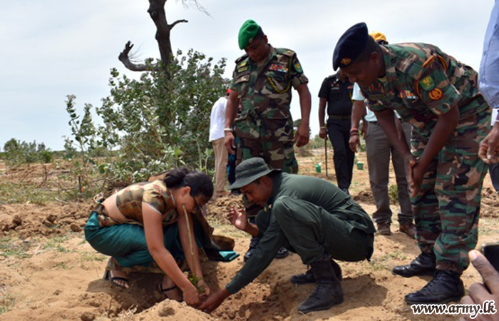 Giving another push to the Army project ‘Thuruliya Wenuwen Api’ and the reforestation programme at Wilpattu National Park conceptualized by the Commander of Army, Lieutenant General Mahesh Senanayake, troops under the Security Force Headquarters - Wanni (SFHQ-W) under the direction of the Commander, SF-Wanni, Major General Kumudu Perera launched another mega tree planting drive at Sinath Nagar area on Thursday (20).