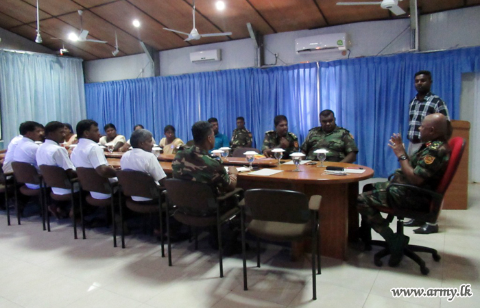 Grama Niladareen (Rural State Officials), resident in areas served by the 65 Division of the Security Force Headquarters - Kilinochchi (SFHQ-KLN) had a friendly discussion with Major General Wasantha Kumarapperuma, General Officer Commanding 65 Division on current security concerns on Saturday (22).