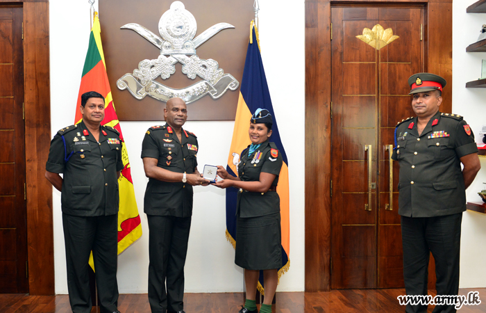 After her expertise was brought to the notice by Major General N.M Hettiarachchi, Colonel Commandant of Sri Lanka Signal Corps and Colonel Imal Assalaarachchi, Commandant at the School of Signals, the Army Chief facilitated the gesture of excellence at the Commander’s Office, Army Headquarters.