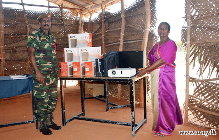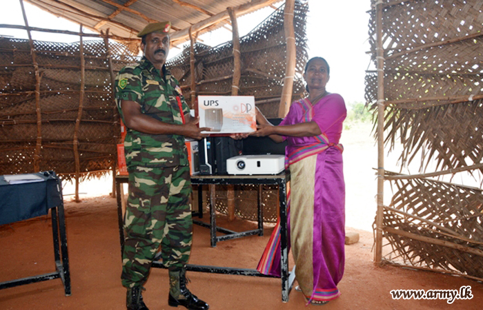 Students at remote M/Paranagama Vidyalaya in the Vavuniya District were among the beneficiaries of a new stock of IT accessories, inclusive of a multi-media unit thanks to an initiative taken by Major General Kumudu Perera, Commander, Security Forces - Wanni (SFHQ-W) who closely monitored the economic constraints, being experienced by students in this school.