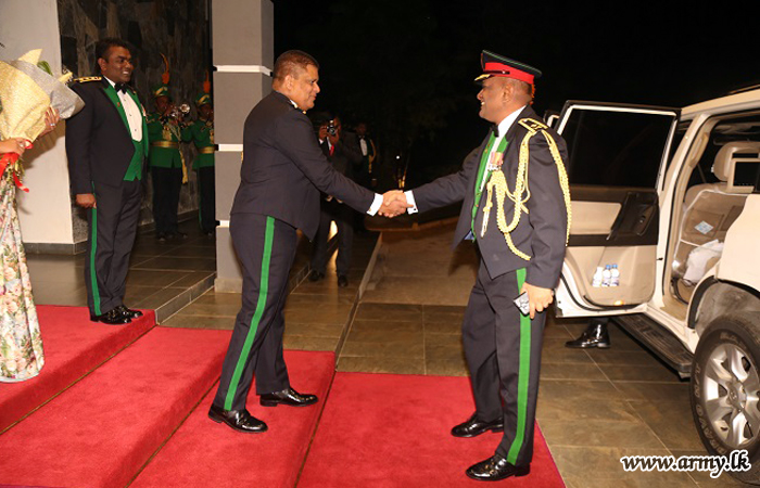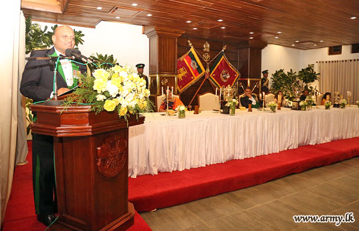 The climax of the day's programme culminated with an elegant 'Farewell Diner' at the Officers' Mess hosted by Major General Shavendra Silva, Chief of Staff & Colonel of the Regiment of GR and Commando Regiment and all officers of the Gajaba Regiment. |