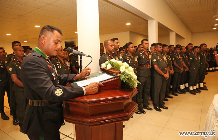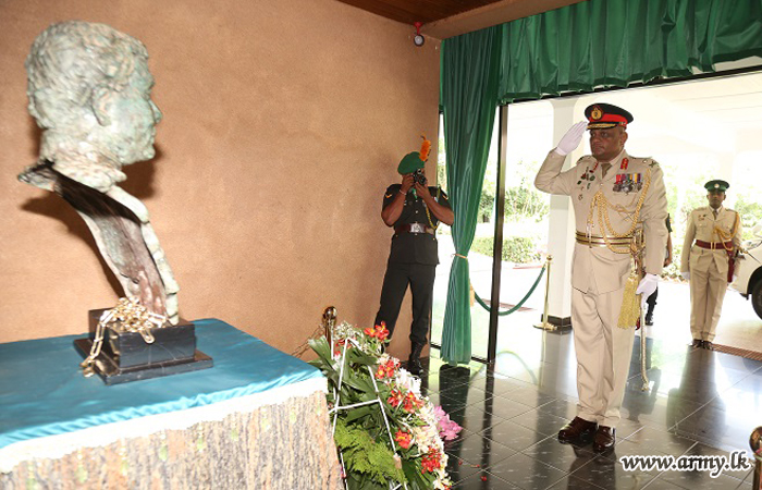 The day's protagonist, Major General Ranawana was warmly welcomed by the GR Deputy Centre Commandant, Colonel Mahinda Rajapaksha on behalf of the Colonel of the Regiment, Centre Commandant, all officers and Other Ranks of the Gajaba Regiment upon his arrival at the main gate at the Regimental Centre before he was greeted in a 'Guard Turnout'. Then he paid his final official tribute to the 'Founder Father’ of the Gajaba Regiment, late Major General Vijaya Wimalaratne by placing a floral wreath at his statue.