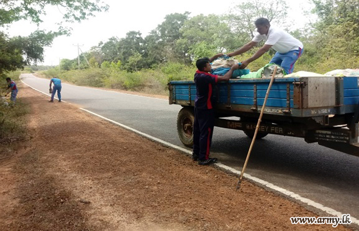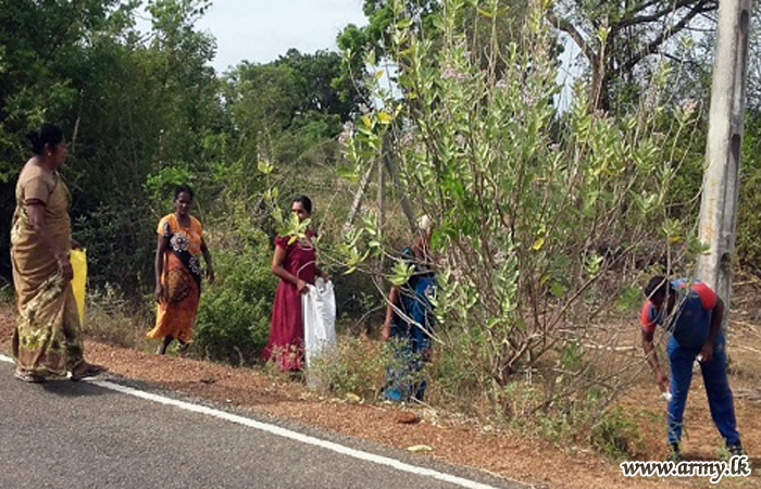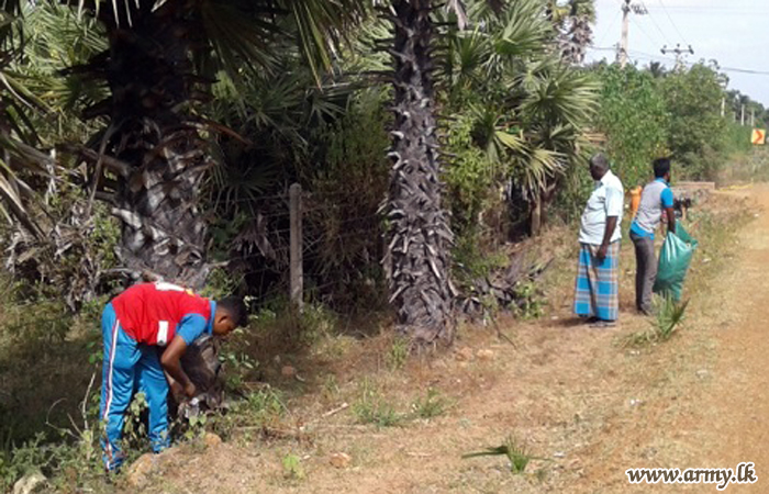 11 (Volunteer) Gajaba Regiment troops of the 651 Brigade cleaned the Mulankavil Primary School premises on request and around the same time, troops of the 7 Sri Lanka National Guard (SLNG) of the 652 Brigade cleared both roadsides along Thirumurukandy - Akkarayankulam road.
