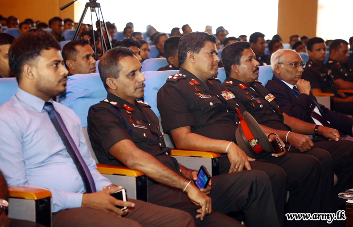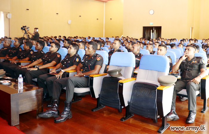 A total of 30 Officers and 210 Other Ranks as part of the ongoing Presidential Task Force's ' Drug Prevention' national drive, listened to an awareness lecture on ‘National Drug Prevention’, organized by the Directorate of Psychological Operations in close cooperation with the National Dangerous Drugs Control Board at the Colombo Army Hospital auditorium on Thursday (27).