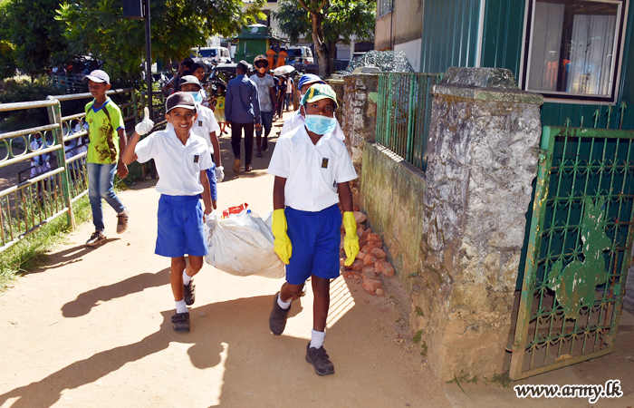 School children, state employees, volunteers joined hands with Army Navy, Air Force troops and Policemen during the annual 'Shramadana' campaign conducted in Bandarawela township areas on Saturday (29).