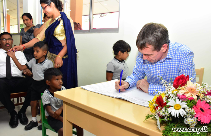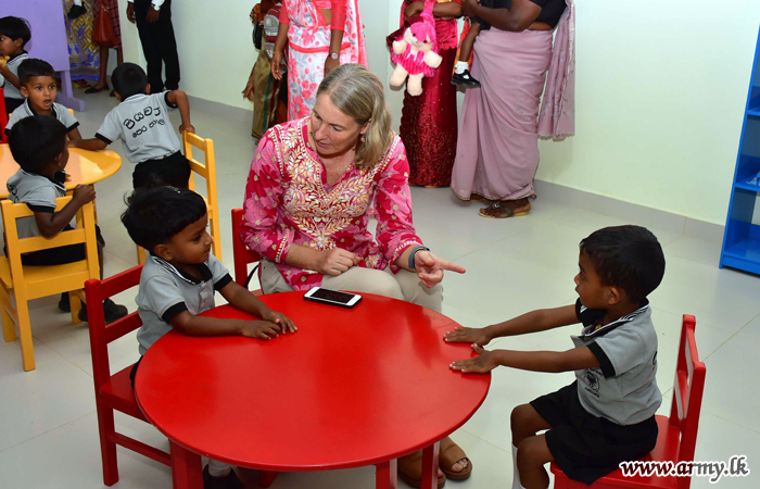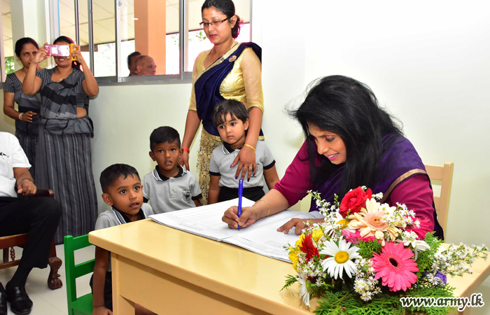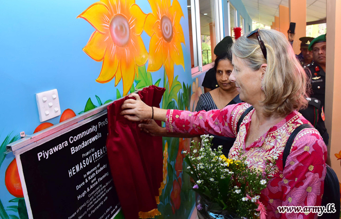 The newly-built pre school was ceremonially opened on Friday (28) and vested in the students in the presence of a gathering of parents, kids and the Mayor of Bandarawela and Major General Laksiri Waduge. |