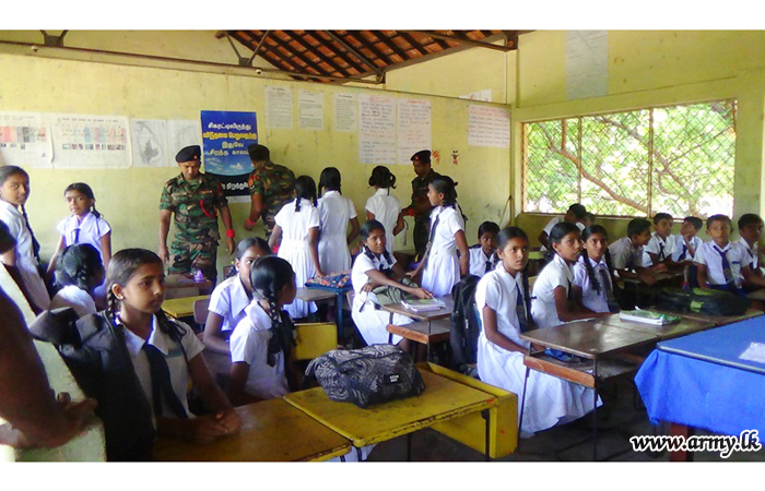 4 Battalion Sri Lanka Sinha Regiment and 16 (Volunteer) Sri Lanka Light Infantry Battalion troops participated in the lecture conducted by the Sub Inspector T.K.K.R.P.H.K Karunarathna in the Police drug prevention unit in the Jaffna District.