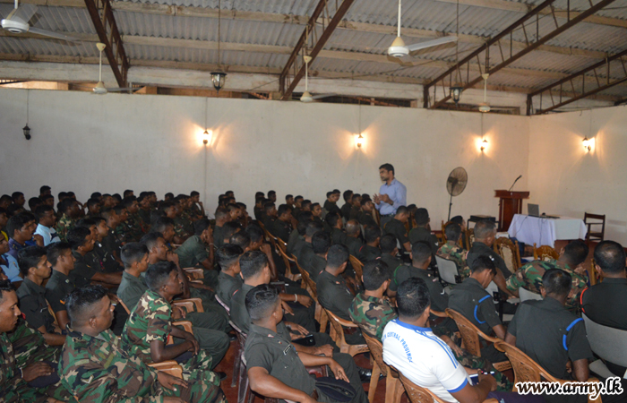 To be in line with the ongoing Presidential Task Force-initiated drug eradication drive, Mr Rasika Weerathunga, an Instructor at Sri Lanka Sumithuro Melmedura and Vista Counseling service delivered a lecture on 'Drug Prevention' and its international network, etc to the troops serving the Security Forces-West. It was held at 9 Battalion Sri Lanka Light Infantry (SLLI) premises on Thursday (27).