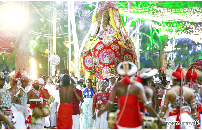 As tight security arrangements have now been enforced with the onset of the annual Esala Perahera season in Kataragama, Army personnel have been deployed to assist the Police in carrying out their security precautions as thousands throng the premises during the festival season (3-17 July).