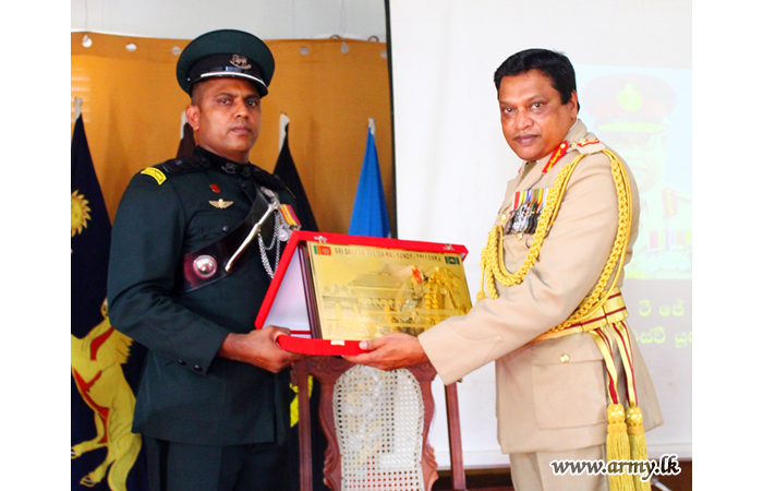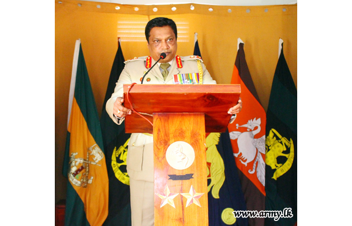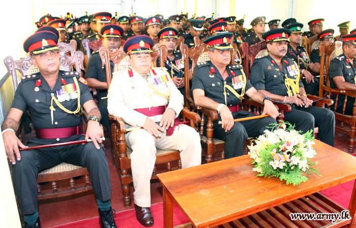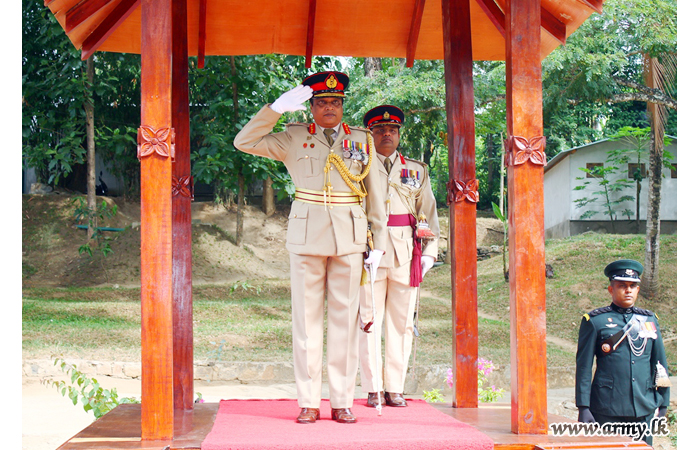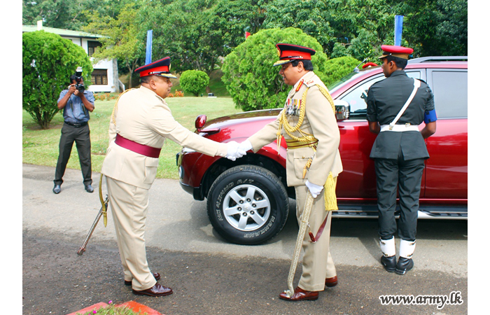 2 (volunteer) Sri Lanka Sinha Regiment troops presented honours to him at the Divisional Headquarters before he addressed the troops and thanked them for the collective support. An all rank tea arrangement culminated the day's proceedings.