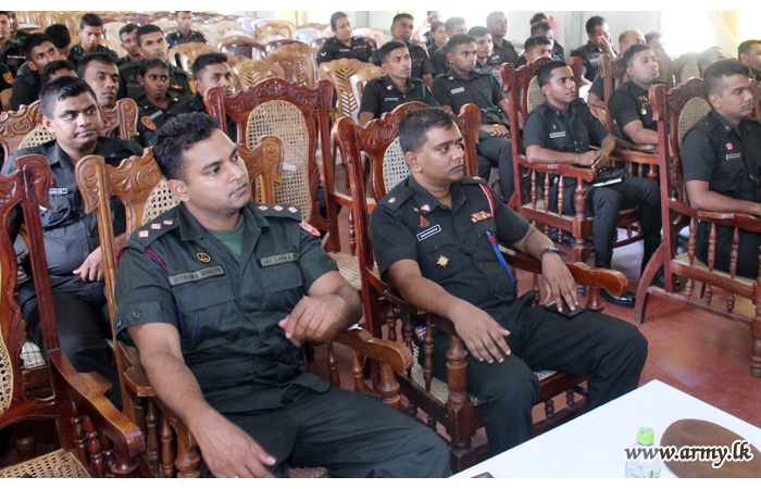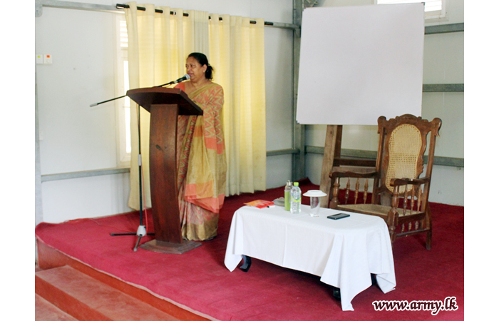 The day’s lecture, themed on ‘Negative Impact on the Family Life and Individuality of the Drug Consumption’ was made possible following the initiative taken by Major General Laksiri Waduge, Commander, Security Forces - Central in close coordination with the Civil Affairs Officer and other staff members. Lecture assistance was provided by Mrs Kumuduni Jayathilake in the Ministry of Defence (MOD). |