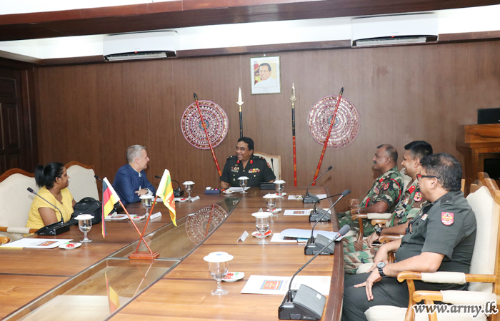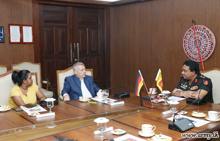 Ambassador of the Federal Republic of Germany in Sri Lanka, His Excellency Joern Rohde paid a courtesy visit to the Security Force Headquarters - Jaffna and had an official meeting with the Commander Security Force - Jaffna, Major General Darshana Hettiarrachchi on Thursday (4).