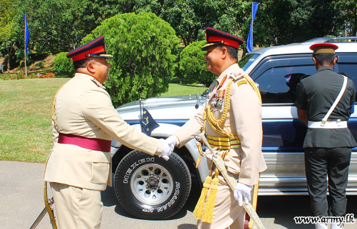 The newly appointed GOC was awarded a Guard Turnout and a Guard of Honour by 2 Battalion Sri Lanka Sinha Regiment troops upon his arrival at the HQ premises in Kundasale.