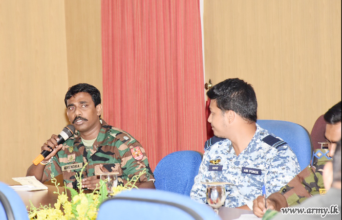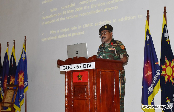 They were warmly welcomed by Major General Vijitha Ravipriya, Commander Security Forces - Kilinochchi at the Security Force Headquarters - Kilinochchi on Monday (8) and were briefed on the roles and tasks of the Security Force Headquarters - Kilinochchi at the auditorium.