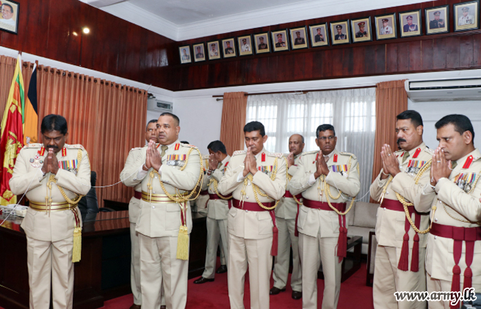 The newly-appointed SF commander was welcomed in a Guard Turnout and a Guard of Honour on arrival at the HQ premises in Panagoda. Subsequently, Major General Mudalige signed an official document amid religious observances of all faiths. He also planted a sapling in the premises to mark the day's event. An All Rank tea culminated the proceedings.