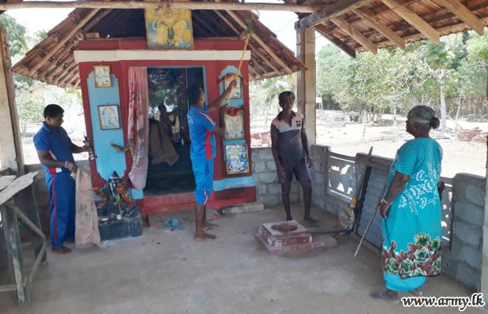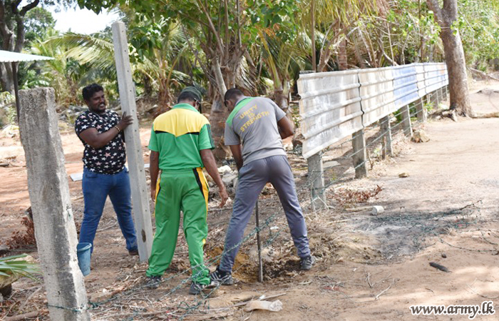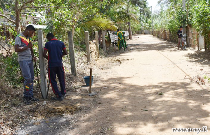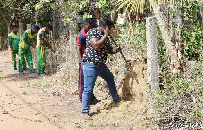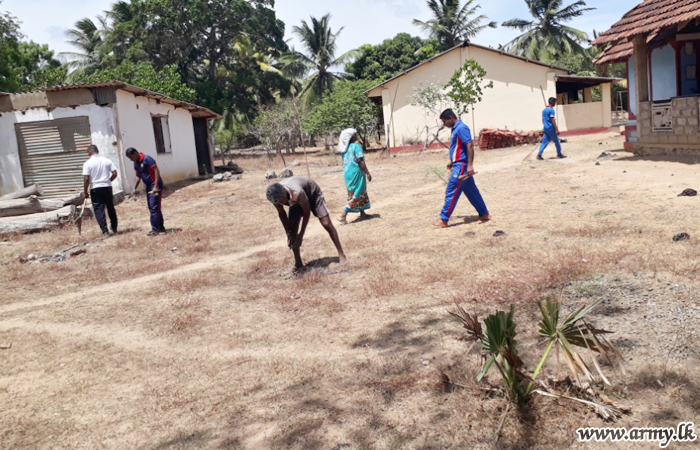 Troops of the 11 (Volunteer) Gajaba Regiment (GR) and 7 Sri Lanka National Guard of the 651 and 652 Brigades under the 65 Division of the Security Force Headquarters-Kilinochchi on the directions of the General Officer Commanding 65 Division, Major General Wasantha Kumarapperuma and under the close supervision of the 651 and 652 Brigade Commanders conducted Shramadana campaigns at Kariyalanagapadduwan Don Bosco Vocational Center premises and Arogyapuram Vishnu Kovil area on Monday (8) as community projects in the areas.