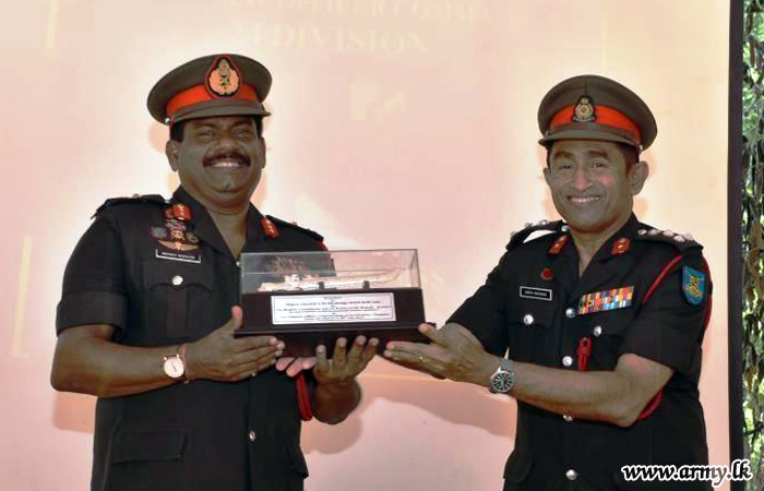 Subsequently, the outgoing GOC participated in an All Rank lunch and addressed the troops and thanked the staff for all the generous support, extended during his tenure as the third General Officer Commanding of the 24 Division. Further, he emphasized the importance of the military role in the present context and instructed the troops to ensure continued rounds of formal & appropriate training to enhance professionalism that would ready them for any emergency. He specially urged to maintain the highest levels of discipline, professionalism and loyalty towards the country and for the Sri Lanka Army. He also appraised the role being played by the Sri Lanka Army on national security needs.