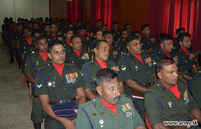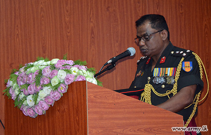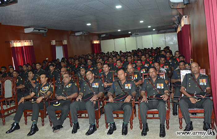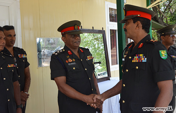 Later, the visiting Wanni Commander addressed representative troops under the Engineers Brigade. The opening of the renovated Officers’ Mess, inspection of Other Ranks’ Mess, Ration Stores and Kitchen Area were among highlights of the day's itinerary for the visitor.