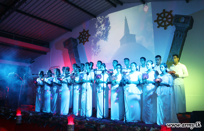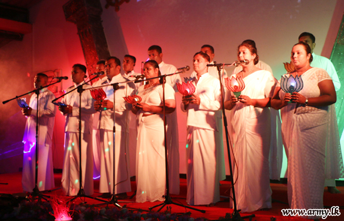 For the first time, Ranaviru Apparels at Yakkala organized a Poson devotional songs programme at the Ranaviru Apparels camp premises. This special programme was conceptualized by the Commandant at Ranaviru Apparels, Major General Manjula Manathunga on account of the sacred Poson Poya day.The programme was held at the camp premises on 19th June 2019.